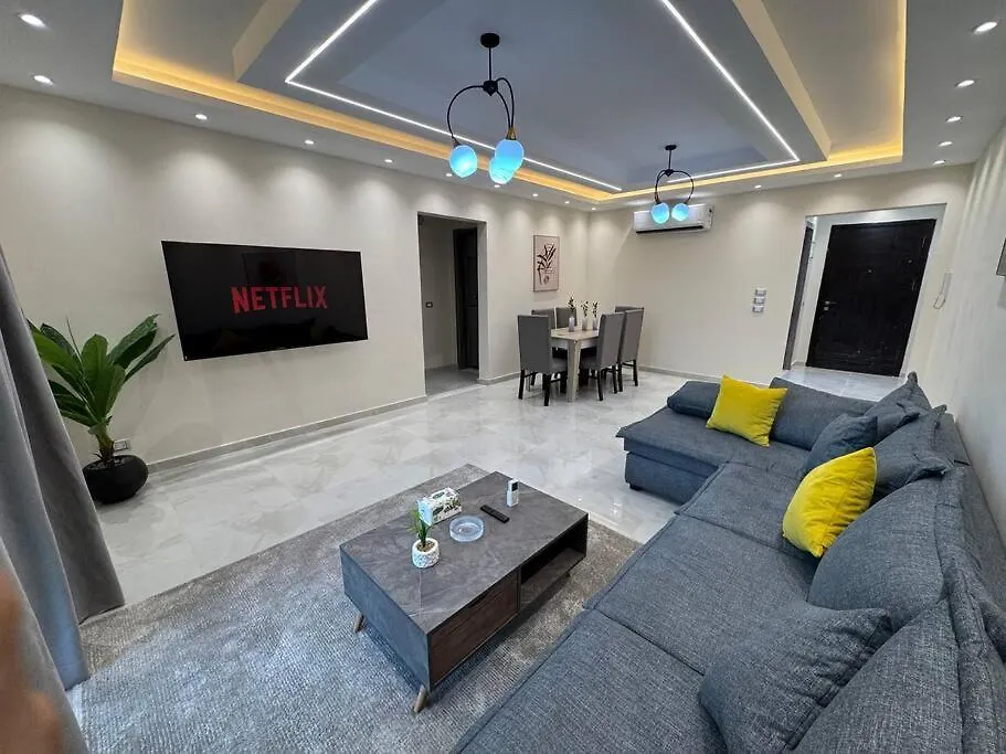 El apartamento Relaxing Luxury 2Bdr - New Cairo By Landmark Stays ofrece una piscina privada y se encuentra a 7 km de la Casa de Simbad el Marino. El apartamento está situado en el distrito Nasr City, a unos 10 minutos en coche de la Fuente Danzante.